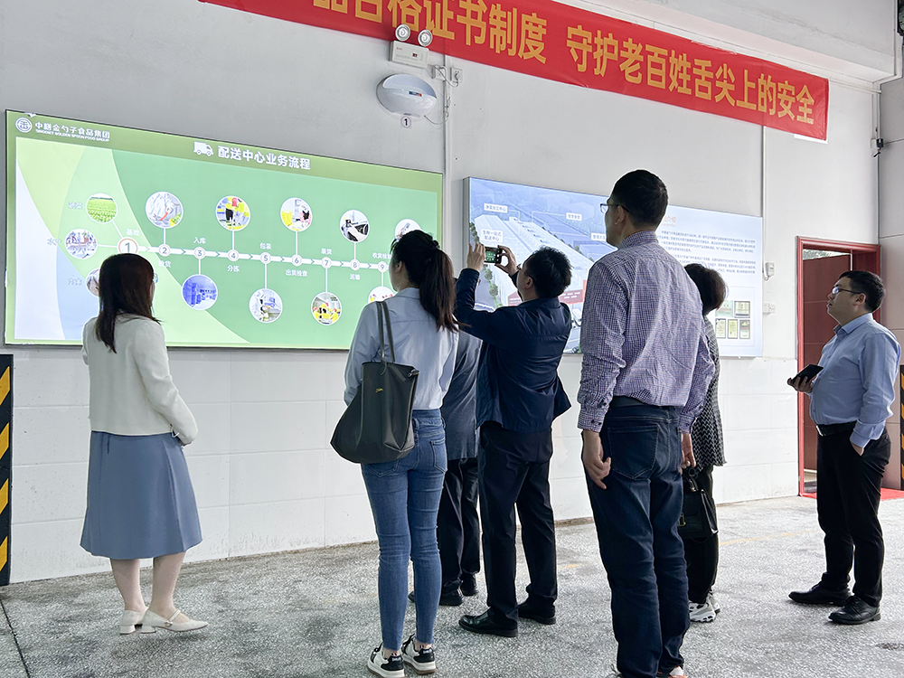 在我司相關人員的帶領下,考察組參觀了集團配送大廳、食材加工中心、食品檢測中心、集團總部辦公區域等,對金勺子食品集團業務發展情況有初步的了解。